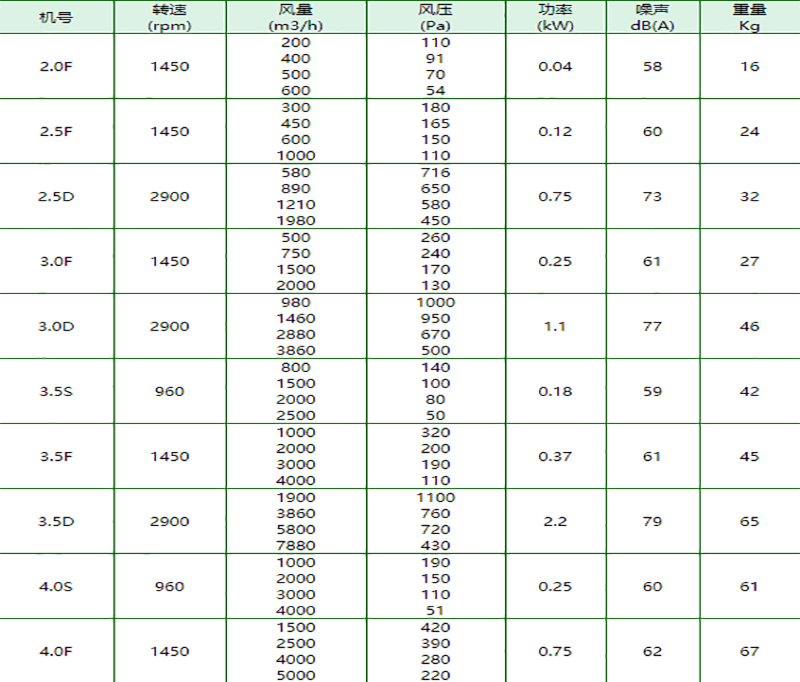 GXF係列斜流通国产麻豆精品成人毛片按葉輪直徑分為400-1400mm十四規格,按類型分為A、B、C、D、S五種類型,共五十八個機號。風量由3000-90000m3/h,全壓由185-2500Pa;這樣就給設計部門和用戶單位提供了充分的選擇條件,具體數據請查国产麻豆精品成人毛片性能參數表。